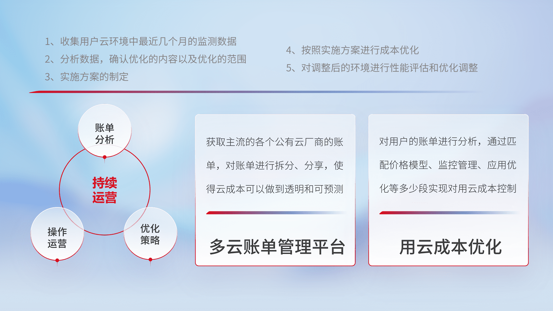 运用智能化工具分析云资源,,,,提供日常费用可视化工具,,自动账单拆分,,,,成本优化云上费用,,,降本增效。。